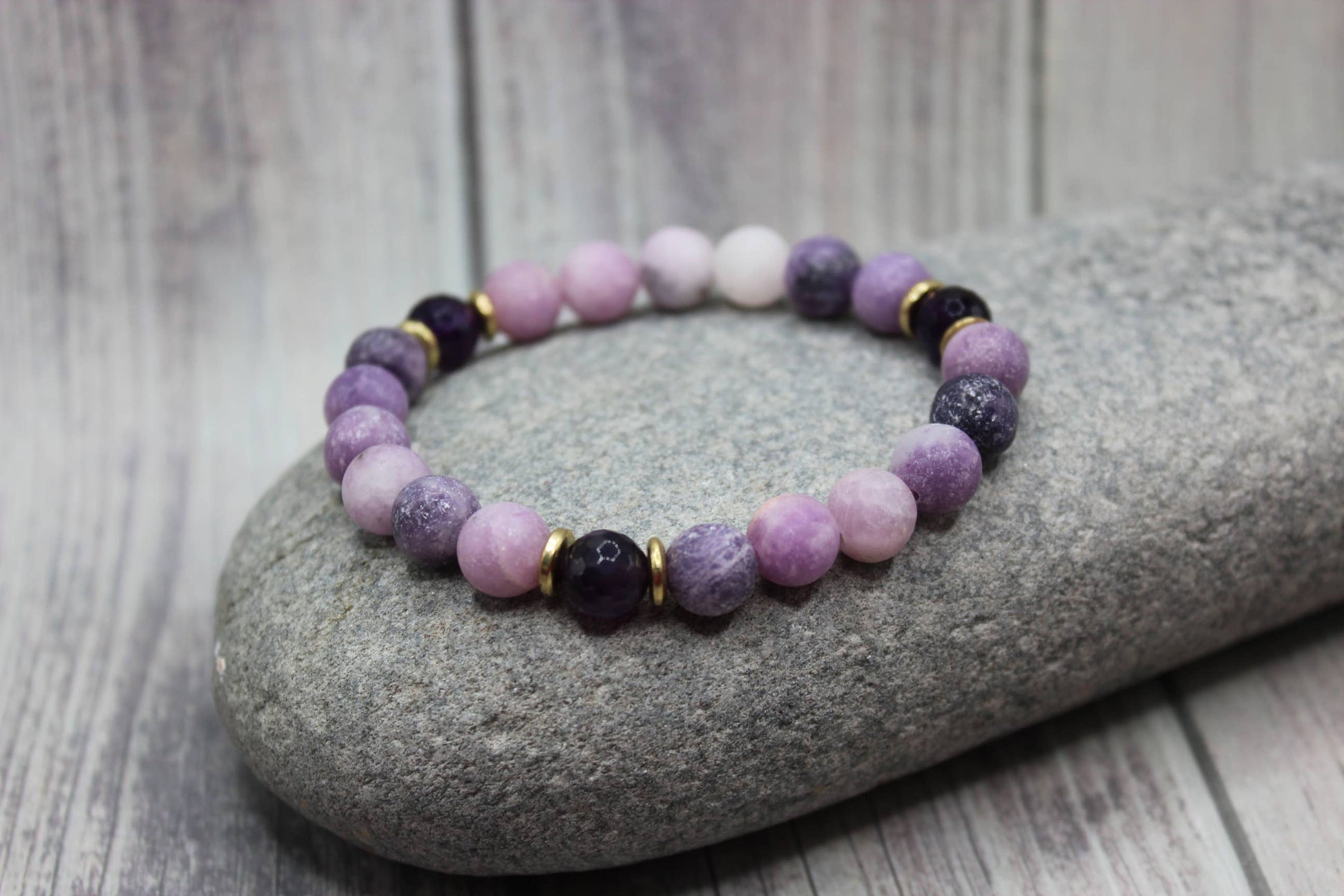 Gracefully handcrafted, this soft and elegant bracelet pairs calming Amethyst with matte Lavender Lilac Jade, accented by delicate gold for a refined, feminine finish. Amethyst is cherished for promoting peace, clarity, and spiritual balance, while Lavender Jade is believed to offer soothing energy and emotional healing.