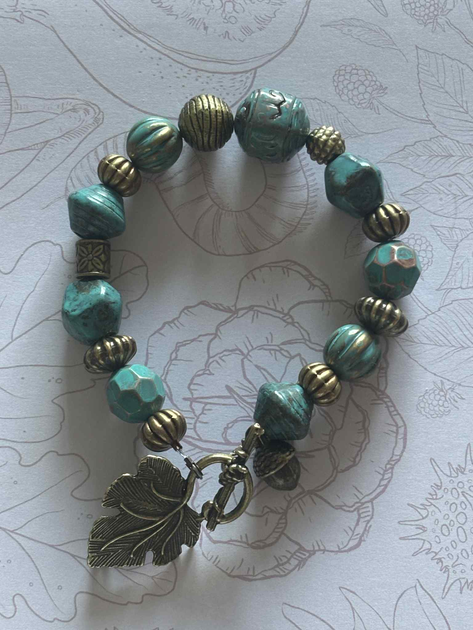 NEW - BRACELET - "OAK & VINE" - Patina Copper & Brass Beads By Wild & Rooted