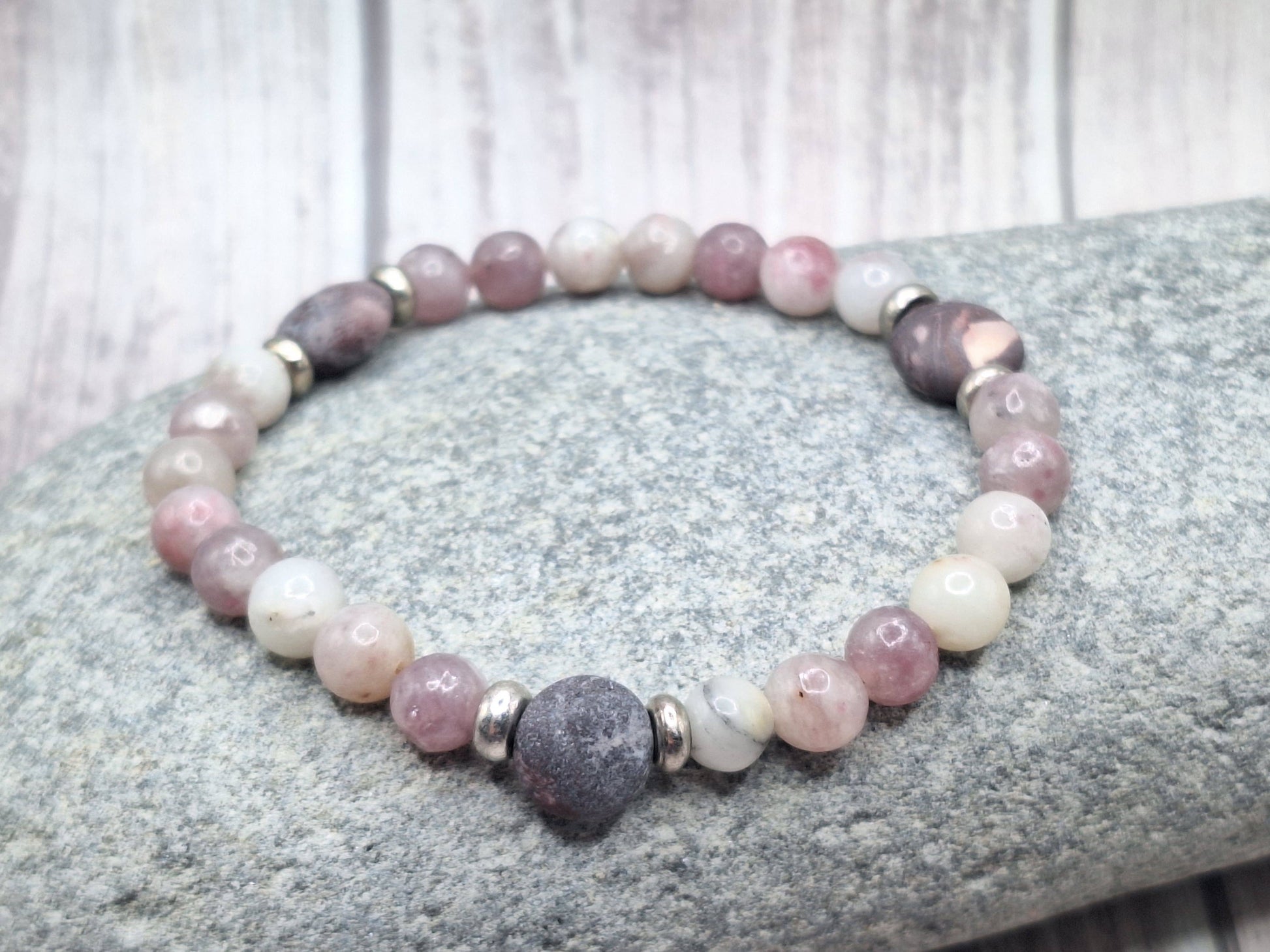 Terra Rosa Jasper is believed to promote strength and emotional stability, while Ruby Quartz adds a spark of energy, passion, and vitality. The rich blend of natural tones and bold color makes this bracelet a standout piece—perfect for daily wear or as a thoughtful, meaningful gift.